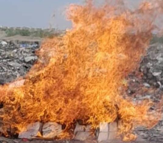 وتمت الإبادة بمكب نفايات مدينة الدويم، وتقدر كمية السلع المبادة بحوالي 2 طن شملت مواد غذائية متنوعة (حلويات – بسكويت – صلصة – مشروبات غازية)، بحضور ممثلين لكل من المدير التنفيذي والنيابة والصحة والشرطة والأمن الاقتصادي بمحلية الدويم.