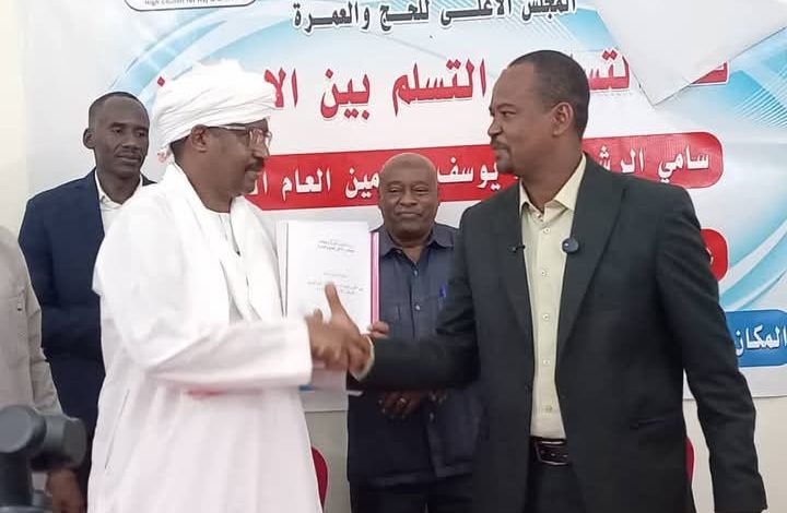 اكنملت اليوم بحاضرة ولاية البحر الأحمر مدينه بورتسودان أجراءات التسليم والتسلم بين الأستاذ عبدالله الله سعيد محمد علي الامين العام للمجلس الاعلي للحج والعمرة الذي تم تعينه مؤخرا من قبل رئيس مجلس الوزراء الدكتور كامل إدريس وبين الأمين العام للمجلس الأعلى للحج والعمرة السابق سامي الرشيد أحمد يوسف بحضور مدراء الادارات بوزارة الشؤون الدينيه والأوقاف وعدد من المسؤلين بالمجلس الأعلى للحج والعمرة وبعض امناء الحج والعمرة بالولايات.