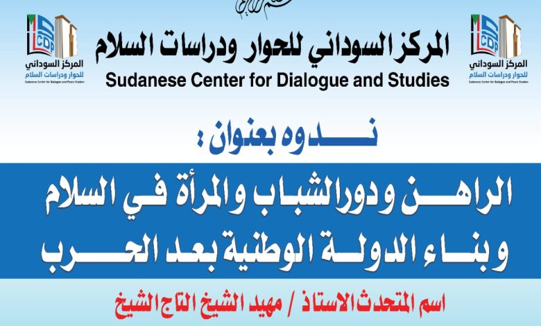 يُنظم المركز السوداني للحوار ودراسات السلام ندوة فكرية بعنوان