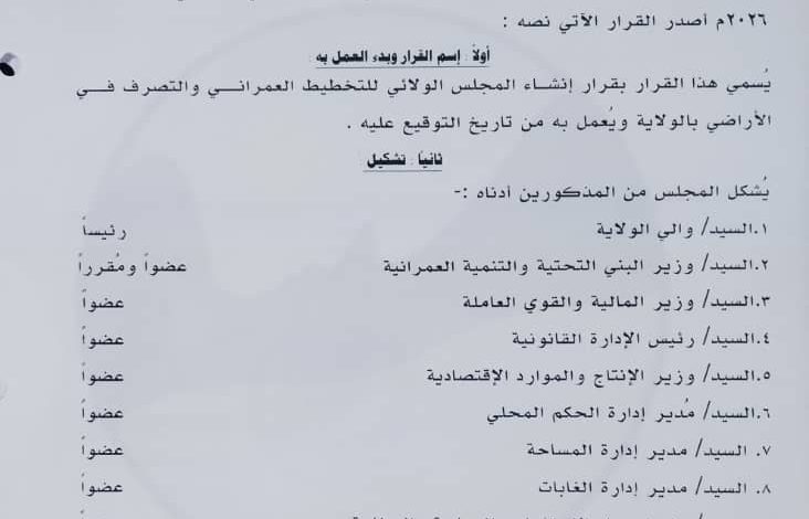 المجلس الولائي للتخطيط العمراني والتصرف في الأراضي بكسلا