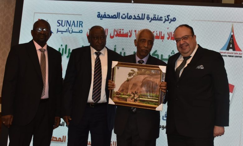 تحت رعاية القائم باعمال السفارة السودانية فى مصر السفير الصادق عمر والسفير حسام عيسى مساعد وزير الخارجية المصري لشئون السودان وجنوب السودان انطلقت امس الاحتفالية الكبرى التي نظمها مركز عنقرة للخدمات الصحفية فى فندق سفير بالقاهرة برعاية كريمة من شركة صن اير للطيران