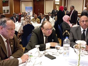 ومن جانبه اكد وزير الخارجية الاسبق السفير محمد العرابي فى كلمته انه مصري لكنه يعشق السودان وان رحلته مع السودان قديمة بدات منذ عام 1983 فى اول زيارة له برفقة الدكتور بطرس غالى وزير الدولة للشؤون الخارجية و منذ هذه الزيارة ارتبط بالسودان وشعبه وارضه ارتباط وثيق وتعددت الزيارات فى 2015 كانت الزيارة الثانية مع وفد برلماني مصري و2017 كانت زيارة مع وفد شعبي للمشاركة فى مهرجان البركل السياحي واخرها كانت العام الماضي كانت زيارة برفقة عدد من البرلمانيين والصحافيين جميع هذه الزيارات اكدت لى ان استقرار مصر لن يكون الا باستقرار السودان محزرا من محاولات جهات لم يزكرها بالعبث بمشاعر شعبي وادي النيل مؤكدا ان مصر حريصة على استقرار الاوضاع فى السودان وان علاقات البلدين لن تتاثر بمثل هذه العواصف وان الروابط الاجتماعية بين البلدين هي الضامن الحقيقي لتقوية هذه العلاقات وتمتينها .