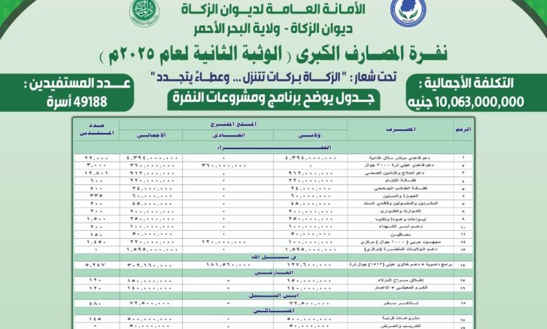 تشهدها البحر الأحمر….الزكاة تطلق نفرة ضخمة تحوي عدد من المشروعات