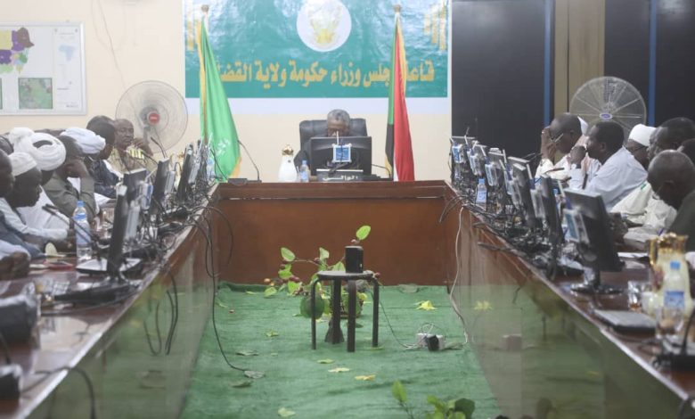 عقد مجلس حكومة الولاية برئاسة والي القضارف المكلف اللواء الركن معاش محمد احمد حسن احمد بقاعة اجتماعات مجلس وزراء حكومه الولاية اجتماعا تعربفيا ضم اعضاء الحكومة الجدد ودعا الوالي المكلف المجتمعين الى العمل المبكر من اجل انجاح الموسم الزراعي وطوارئ عيد الاضحى المبارك وفصل الخريف كما وجه وزارة التربية والتوجيه بالعمل مع الجهات ذات الصلة لاعداد سكن بديل للنازحين الذين يتواجدون بمدارس الولاية تتوفر فيه المقومات الاساسية لإيواءهم حتى يتم تهيئة المدارس لانطلاقة العام الدراسي الجديد الى جانب العمل على رفع الحس الأمني لدى مواطني الولاية