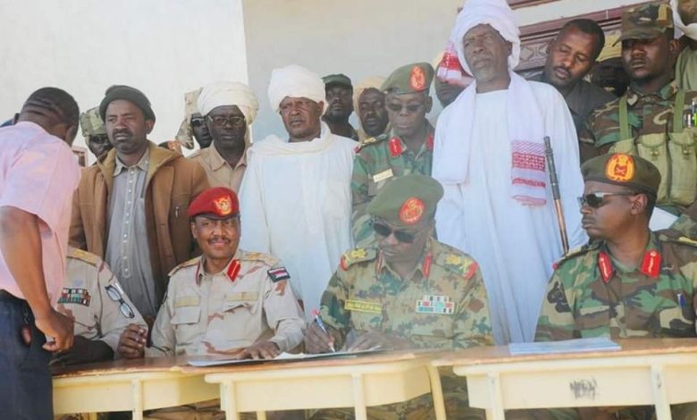 شهد رئيس لجنة السِلم والمصالحات بقوات الدعم السريع العقيد موسى حامد امبيلو توقيع وثيقة التعايش السِلمي بين المكونات الأهلية، عبر ملتقى اللجان المشتركة بمنطقة أبو قمرة والمناطق المجاورة لها، تمهيداً لعقد مؤتمر جامع للمصالحات الأهلية لإنهاء الصراعات بتلك المناطق