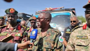 و تسلم القافلة والي الولاية المكلف اللواء معاش الزبير حسن السيد برفقته مناديب المؤسسات العاملة في المجال الإنساني وأشاد الوالي بجهود جهاز المخبارات العامة فى معركة الكرامة شاكرا له ادواره المختلفة