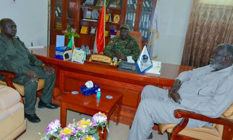 إطلع الفريق أحمد العمدة بادي حاكم إقليم النيل الأزرق رئيس لجنة الأمن بالإقليم , إطلع على مجمل الأوضاع الأمنية والإنسانية بمحافظة باو . جاء ذلك لدى لقائه بمكتبه اليوم بالأستاذ جعفر جاكلو محافظ محافظة باو .