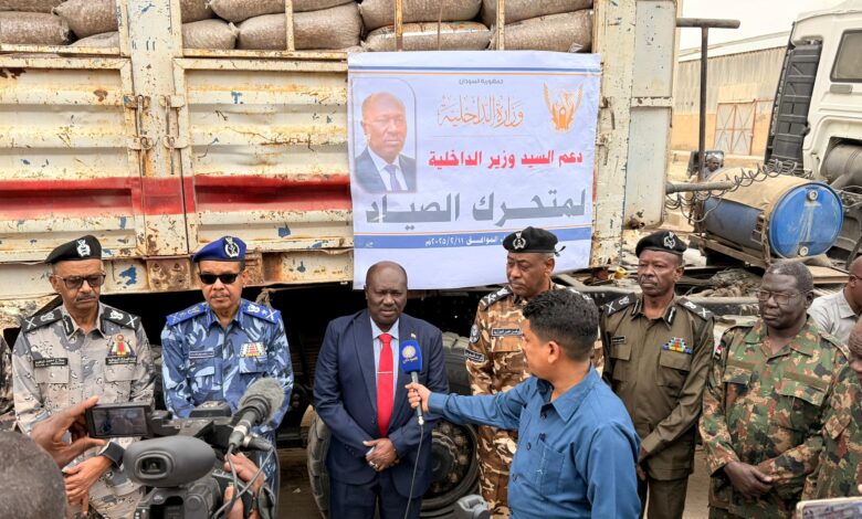 ودشن سايرين وزير الداخلية المكلف اليوم الثلاثاء دعم وزارة الداخلية لمتحرك الشهيد الصياد بولاية شمال كردفان بحضور الفريق شرطة محمد إبراهيم عوض الله نائب المدير العام المفتش العام والفريق شرطة ياسر عمر أبوزيد مدير قوات السجون واللواء شرطة صلاح احمد ابراهيم مدير قوات الجمارك واللواء شرطة عصام حقار مدير قوات حماية الحياة البرية.