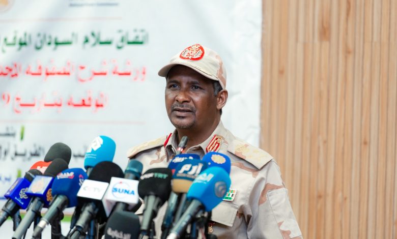 أكد نائب رئيس مجلس السيادة، الفريق أول محمد حمدان دقلو، التزام الحكومة بتنفيذ اتفاق جوبا لسلام السودان، وفقاً للمصفوفة المحدثة، إلى جانب الالتزام بالتوصيات التي خلصت إليها الورشة كافة.
