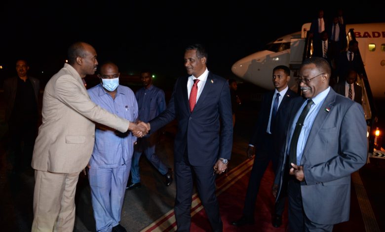 وكان في استقباله بمطار الخرطوم، الأمين العام لمجلس السيادة، الفريق ركن محمد الغالي علي يوسف.