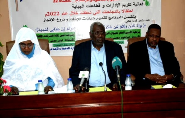من جانبه ثمن الاستاذ محمداحمد عبدالله عشه مدير عام الجباية مبادرة الشركات مؤكدا انها تحس العاملين بقيمة محهوداتهم وتحرض علي مزيد من البذل وأضاف ان قيمة هذا التكريم هو وفائه وتقديره للدرجات الدنيا من العاملين مضيفا ان إدارة الجباية تعول كثيرا علي أمانة زكاة الشركات وتوليها جل اهتمامها وتوفير معينات العمل حتي يتحسن الأداء ويتطور في جانب زكاة الاموال