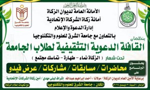 في إطار تعزيز الشراكات المؤسسية ودعم الدور المجتمعي في نشر الوعي والمعرفة، طرقت امانة زكاة الشركات الاتحادية منابر التعليم العالى و بشراكة مميزة بين أمانة الشركات وجامعة الشرق للعلوم والتكنلوجيا تم تنفيذ قافلة دعوية تثقيفية تحت شعار الزكاة نماء_ طهارة وتماسك مجتمع استهدفت طلاب الجامعة،
