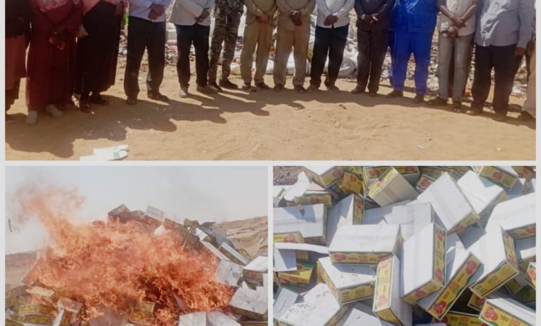 من جهة ثانية تمت إبادة (30) طنا من المواد الغذائية والسلع الفاسدة ومنتهية الصلاحية، بحضور مدير قطاع الولاية الشمالية د. عبدالعظيم إسماعيل، والجهات ذات الصلة والمهتمة بحماية المستهلك .