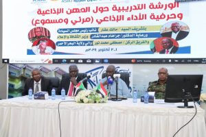 جاء ذلك لدى مخاطبته فاتحة اعمال الورشة التدريبية حول المهن الاذاعية وحرفية الآداء الإذاعي التى تنظمها الهيئة العامة للإذاعة والتلفزيون بمشاركة هيئة الاذاعة والتلفزيون بولاية البحر الأحمر وبالتعاون مع إتحاد إذاعات الدول العربية، بحضور وزيرى الثقافة والأعلام والعمل ووالى البحر الأحمر.