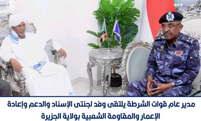 وفى تصريح (للمكتب الصحفى للشرطة) أوضح رئيس اللجنة أن اللقاء ناقش بعض القضايا الخاصة بجهود لجان الإسناد والدعم والمقاومة الشعبية فى معركة الكرامة بكافة محاور القتال بولاية الجزيرة مبينا أن الزيارة حققت نجاحات كبيرة بتفهم قيادة الشرطة لأهداف النفرة الشعبية الواسعة التى انتظمت عموم أرجاء الولاية دعما وسندا للقوات المسلحة وجهادا ومقاومة للقوات الباغية الساعية فى الأرض بالفساد مضيفا أن السيد مدير عام قوات الشرطة وجه بأن تكون أول رحلة لطائرة الشرطة الجديدة ترحيل الأدوية والعقاقير الطبية ومستلزماتها لإسعاف وإغاثة المواطنين بولاية الجزيرة والتى شهدت إنتشار بعض الأمراض والأوبئة نتيجة توقف الخدمات الطبية بعد تعرض المؤسسات الصحية للدمار والخراب بواسطة المليشيا المتمردة وذلك من واقع مسؤولية الشرطة المجتمعية والإنسانية والأخلاقية تجاه المواطنين .