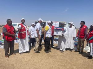وزع فريق جمعية الهلال الأحمر الكويتي المتواجد بالسودان حاليا مساعدات إنسانية على متضرري الفيضانات في منطقة (العبيدية) بولاية نهر النيل شمال السودان.