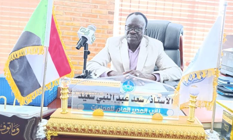 بشر نائب المدير العام لهيئة الموانيء البحرية سعد عبدالنبي سعيد بنقلة مرتقبة للعمل في الهيئة مقبل الايام المقبلة وأعلن عن تنفيذ شعار زيرو انتظار للبواخر خارج الميناء بعد دخول الآليات الجديدة التي ستصل للهيئة غضون الأيام القادمة وأعلن عن وصول ٨ كرينات مطاطية ومولدي كهرباء بالإضافة لآليات نقل ٤٥ طن وأشار إلي أنها ستسهم في تطوير آليات النقل بالموانيء السودانية وكشف عن تطور كبير تشهده الموانيء البحرية خلال الفترة الماضية.