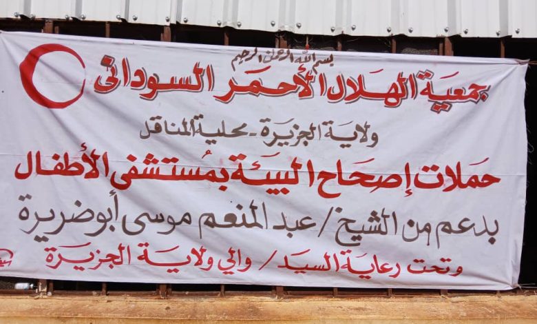 ودشن الخير صباح اليوم السبت حملة اصحاح البئية بمستشفي الأطفال التي نظمها الهلال الاحمر السوداني ودعم من الشيخ عبدالمنعم موسي ابوضريرة رئيس لجنة الاعمار والاسناد بالولاية وذلك بحضور المقدم أمن معتز حامد مدير جهاز المخابرات العامة بمحلية المناقل والدكتور عمار يحي سليمان مدير إدارة المستشفيات.