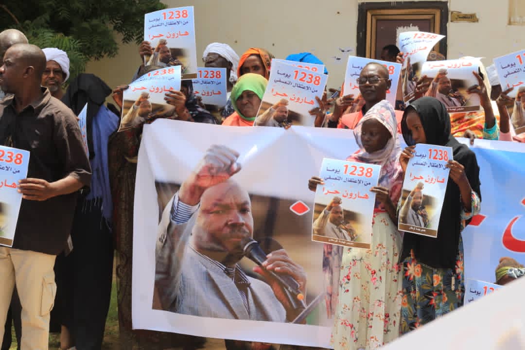 انجازات احمد هارون واعتبروه انه لم يمثل حزب المؤتمر الوطني وانما ابن السودان البار وسلم منظموا الوقفة الاحتجاجية النائب العام مذكرة تطالب باطلاق سراحه وكانت هيئة الدفاع عن احمد هارون قد كشفت في وقت سابق المخالفات القانونية التي ارتكبتها السلطات لتاكيد ان ابقاؤه بالحبس سياسيا وليس لجرائم ارتكبها موضحة انه بقى لعاما كاملا بالسجن دون اجراءات قانونية مما اضطر للطعن امام المحكمة الدستورية التي امرت باطلاق سراحه ووضعوه متهما في بلاغ مشكلة قبلية بمدينة الجنينة وان النيابة شطبت الاجراءات فيها وكشفت الهيئة ان القضاء خالف القانون في تجديد حبسه الذي يتم كل شهرين ودون ان يمثل امام القاضي