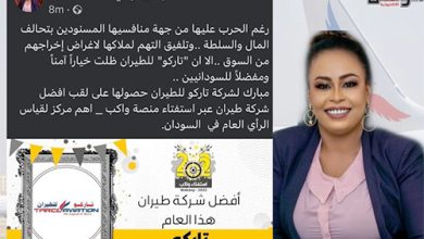 الخرطوم _البلد نيوز حصلت شركة تاركو للطيران على لقب أفضل شركة طيران عبر استفتاء منصة واكب. وقالت الإعلامية رشان أوشي…
