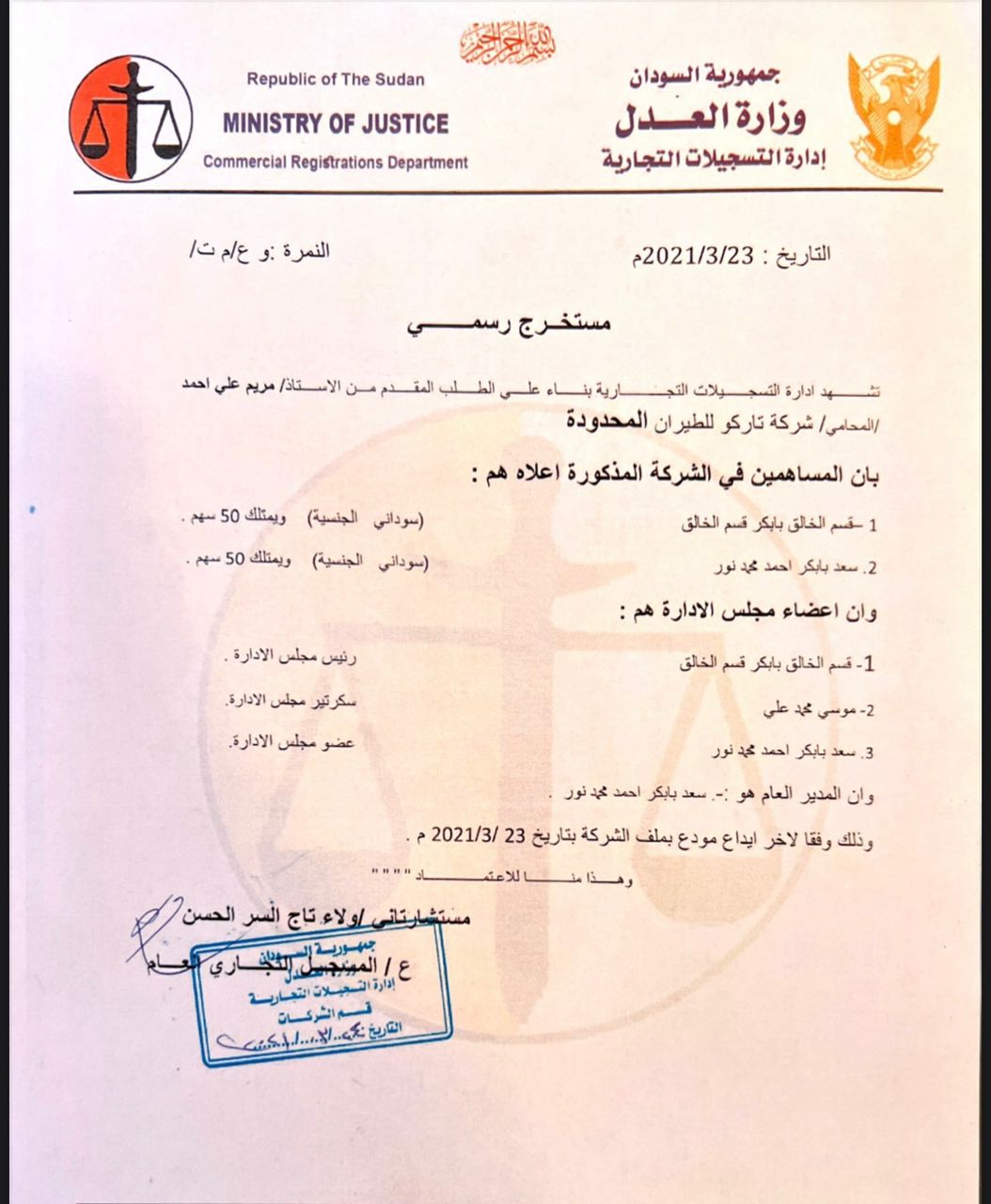 الخرطوم:البلد نيوز كشف مُستند صادر من بنك الخرطوم في الأول من أغسطس ٢٠١٩ عن أن شركة تاركو للطيران اوفت بسداد…