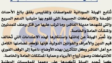 رسالة تعاطف ودعم من أسرة المواصفات لأهل الفاشر