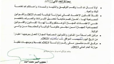 التخويل بالصرف على ميزانيةالعام٢٠٢٣م في نهر النيل