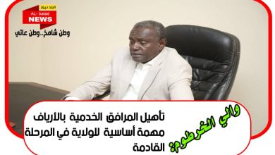 الخرطوم/راشد فيصل أكد والي الخرطوم المُكلف الأستاذ أحمد عثمان حمزة ان تأهيل المرافق الخدمية بالارياف مهمة اساسية لحكومة ولاية الخرطوم…