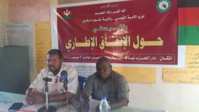 نيالا: ناصر خيورة. عقد حزب الامةالقومي بولاية جنوب دارفور مؤتمر صحفي بمدينة نيالا رحب فيه بالأتفاق الأطاري الذي وقع بين…