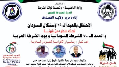 القضارف:البلد نيوز إحتفلت إدارة المرور ولاية القضارف اليوم بالذكري (٦٩) للإستقلال والعيد السبعين للشرطة السودانية ويوم الشرطة العربية بحضور…
